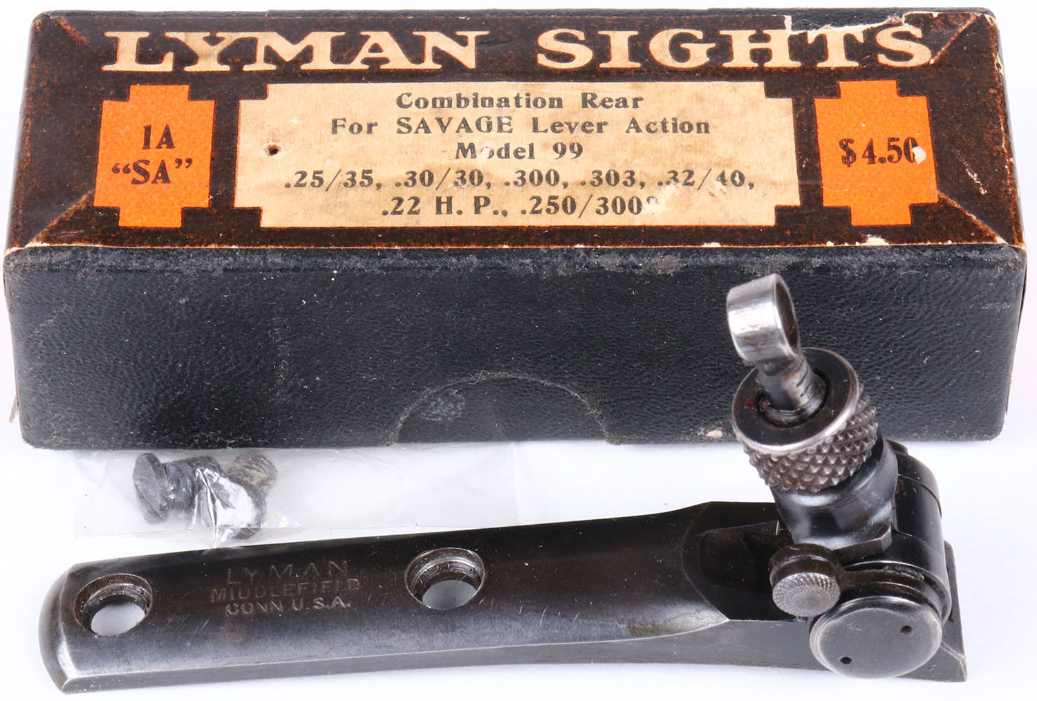 Lyman Tang sight No 1A SA for Sav Mod 99, in orignal box witj screws & direction sheet. Grade: Excellent - Value: 150 to 300
