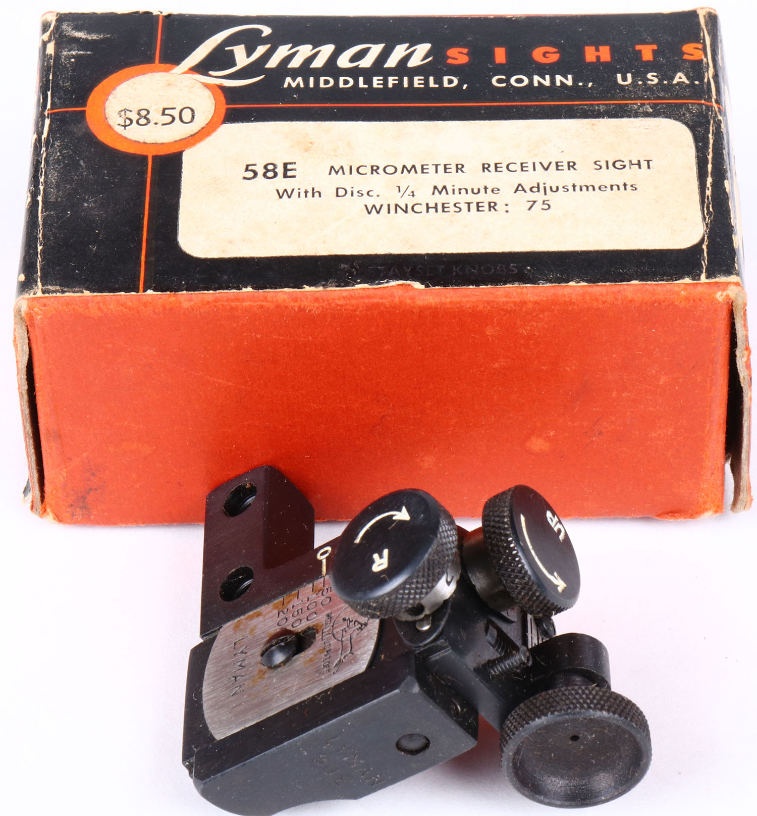 Lyman sight 58E for Win mod 75, in orignal box with screws & tissue. Grade: Excellent - Value: 50 to 150