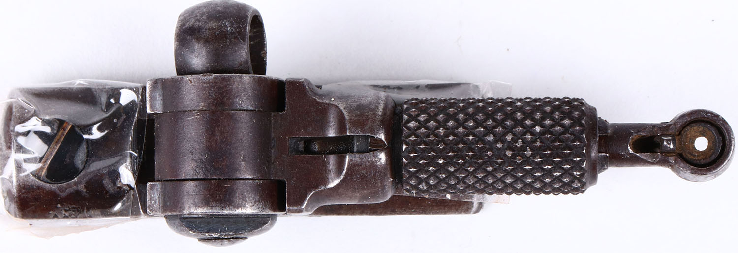 Lyman PV Tang sight, consignor indicates came off walnut hill stevens. With screws. Grade: Very Good++ - Value: 100 to 200