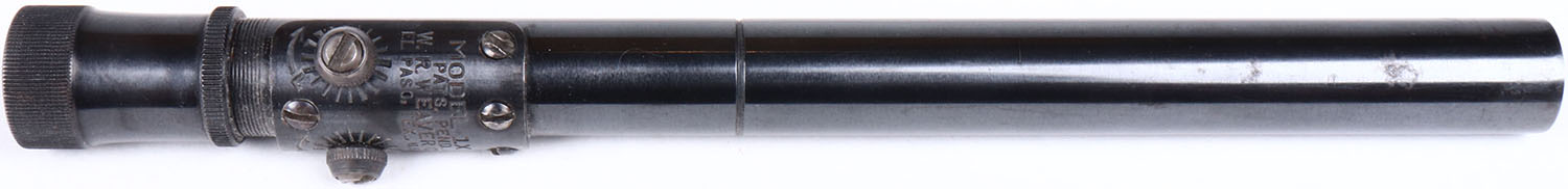 RARE! Weaver 3/4'' Rifle scope, Model 1X, 1 power, fine crosshair reticle, 3.25'' eye relief, with thick horizontal radical hair & fine vertical hair. Grad: Excellent - Value: 20 to 200