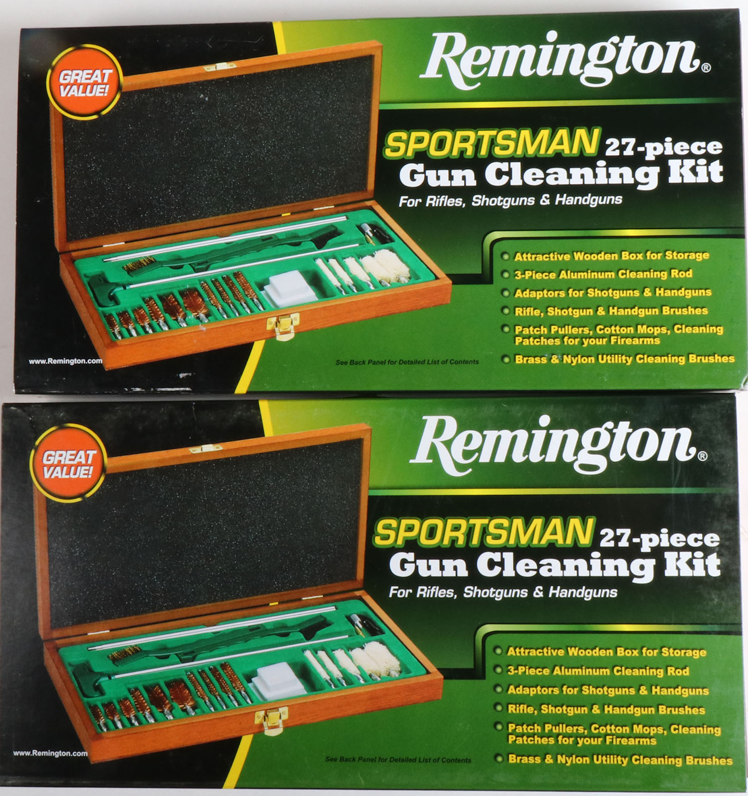 Lot of 2 Remington Gun Cleaning kits, Full Kit with oil, has cardboard sleeve. Grade: Excellent - Value: 10 to 100