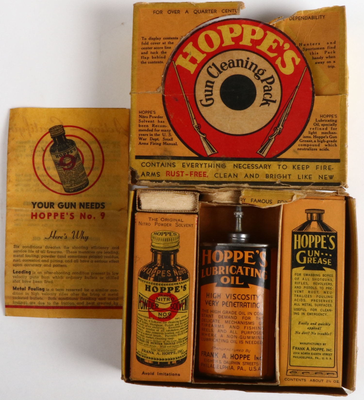 Hoppes Fun Cleaning Pack, Full Kit with oil, in cardboard sleeve box that has scuffing. Grade: Very Good - Value: 10 to 100
