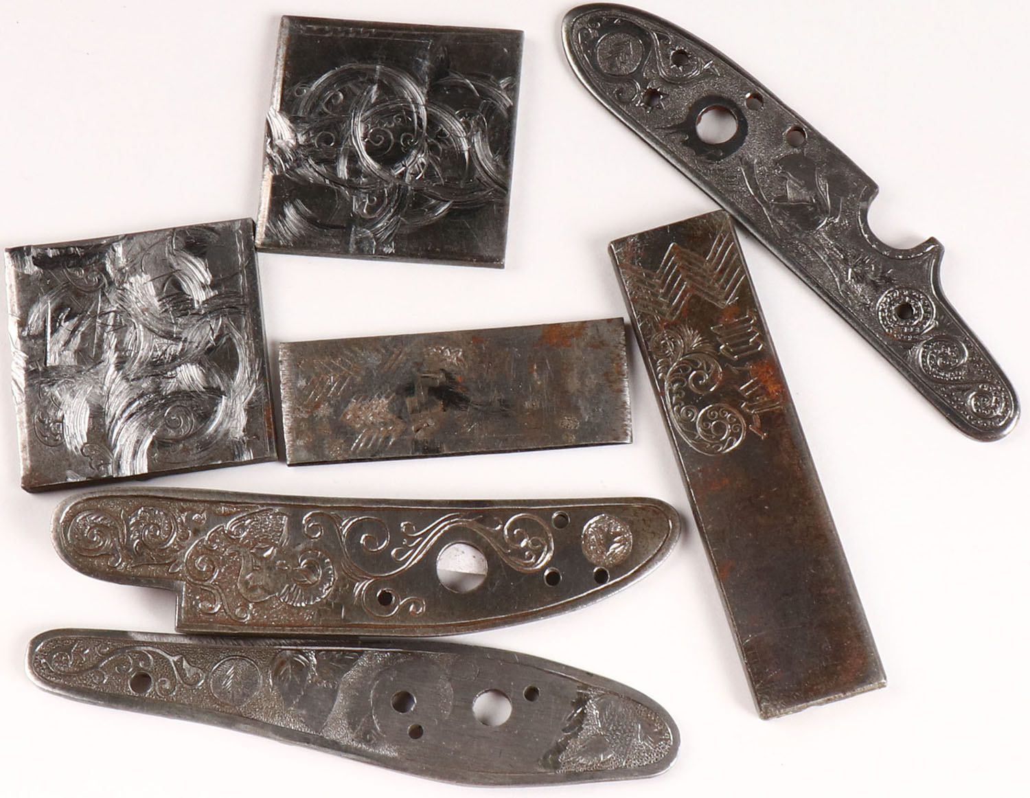 Lot of engraving side plates. Grade: Excellent - Value: 10 to 100