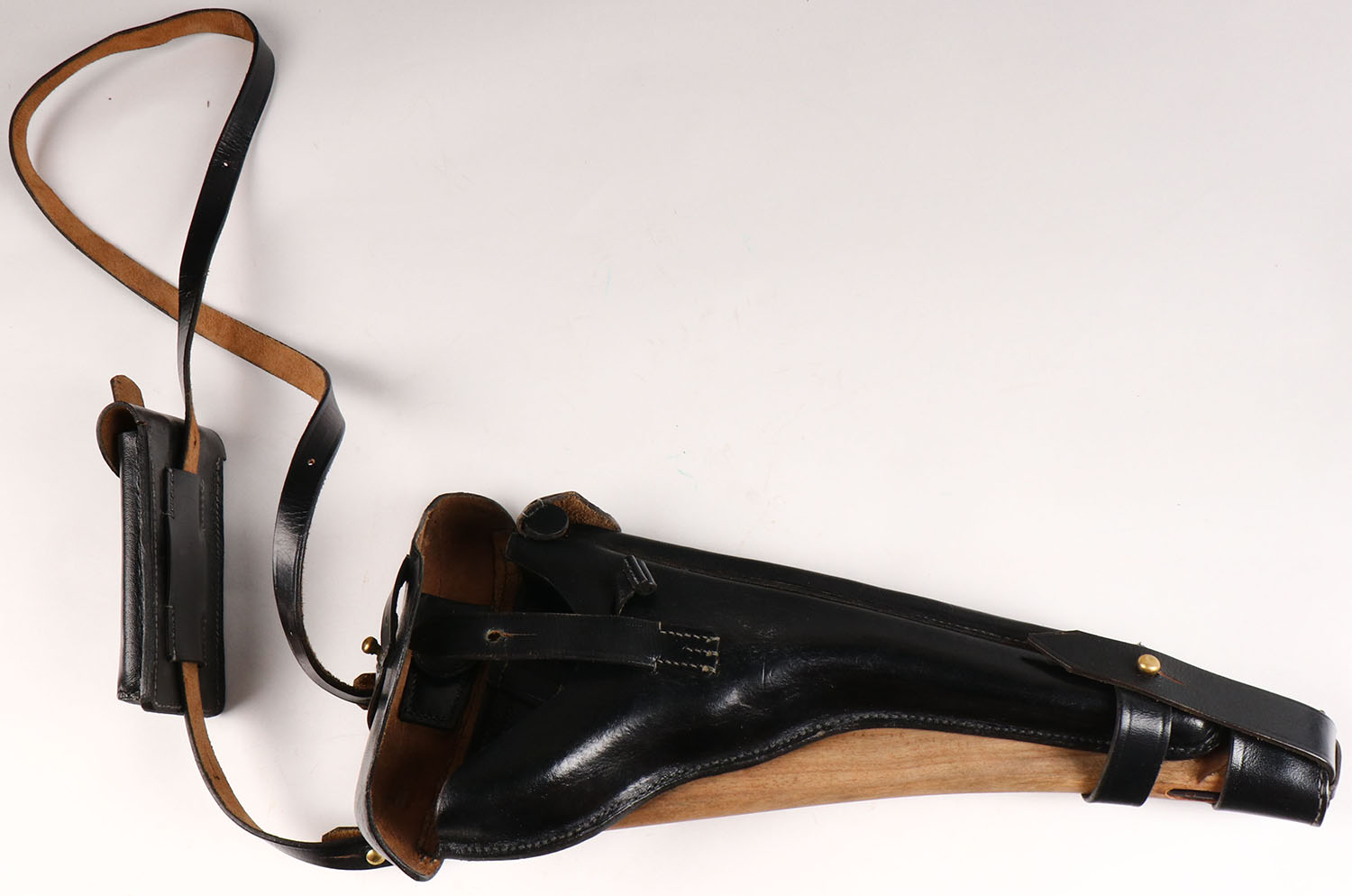 Wood and leather holster, unmarked. Grade: Excellent - Value: 10 to 60