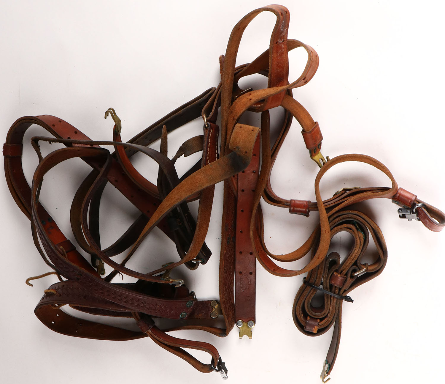Large lot of leather rifle slings. Grade: Very Good ++ - Value: 6 to 60