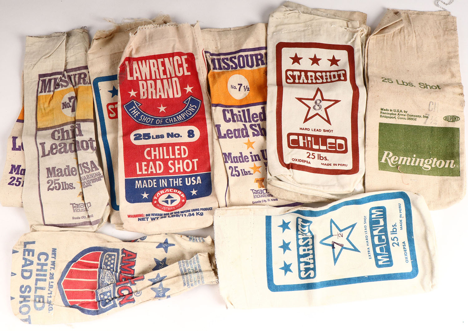Large lot of empty shot bags. Grade: Excellent - Value: 6 to 60