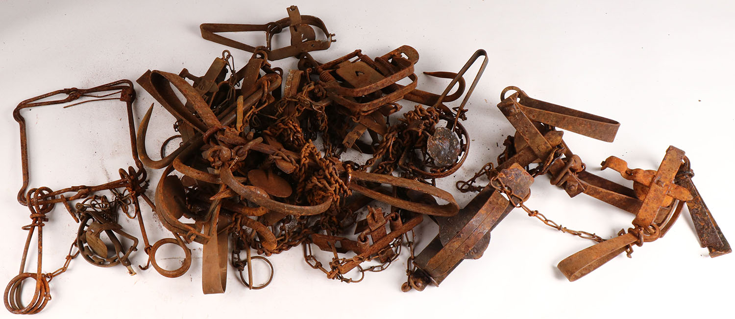 Very large lot of small animal traps, all have rust. Grade: Very Good - Value: 40 to 200