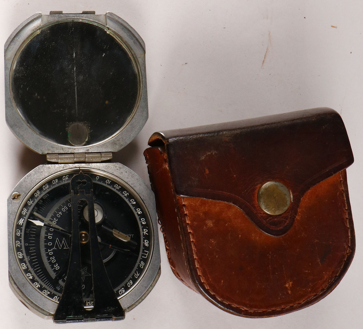 DW Bruntons Wm Ainsworth & Sons compass, in leather case. Grade: Very Good ++ - Value: 6 to 60