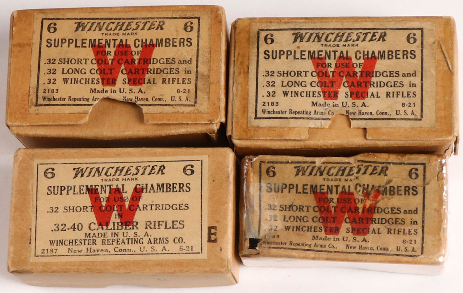 lot of 4 Winchester Supplemental chambers boxes, all empty. Grade; Excellent - Value: 2 to 40