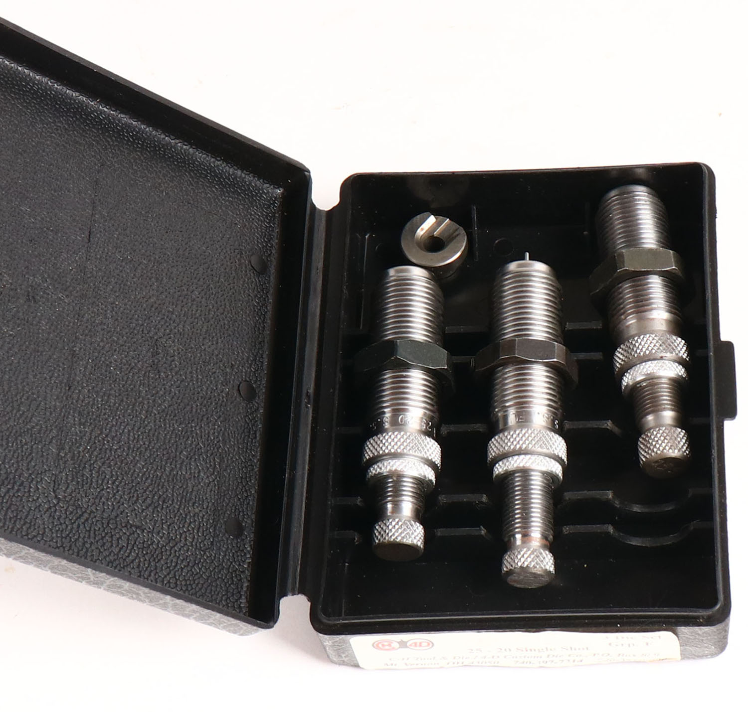 C-H Tool & Die reloading dies, .25-20 Single shot, in original box. Grade: Excellent - Value: 10 to 50