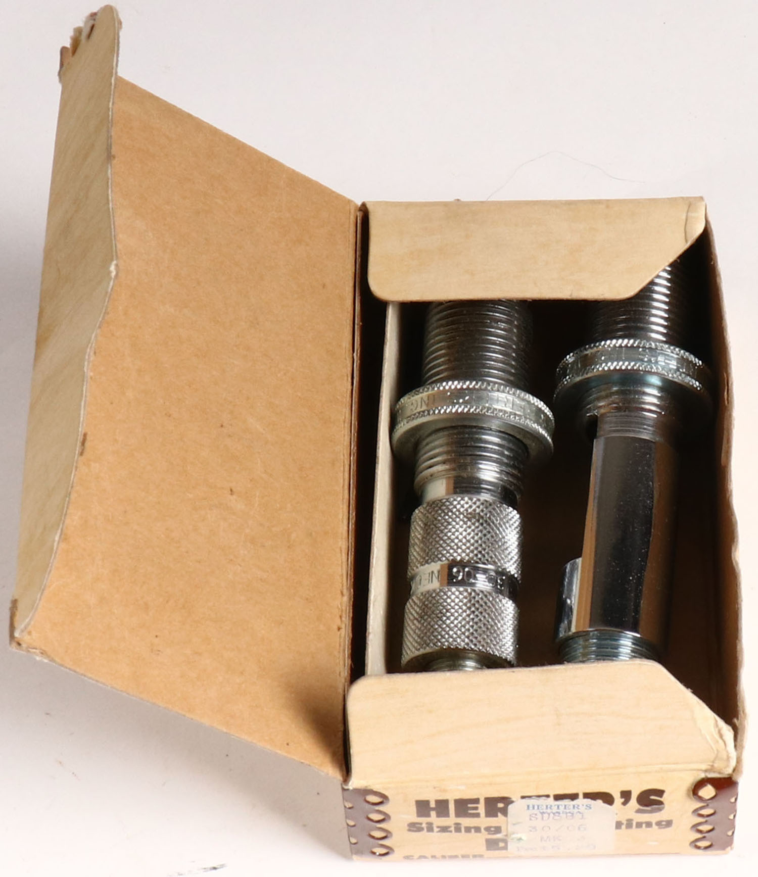 Herters sizing and seating dies, .30-06 cal., in original box. Grade: Excellent - Value: 6 to 60