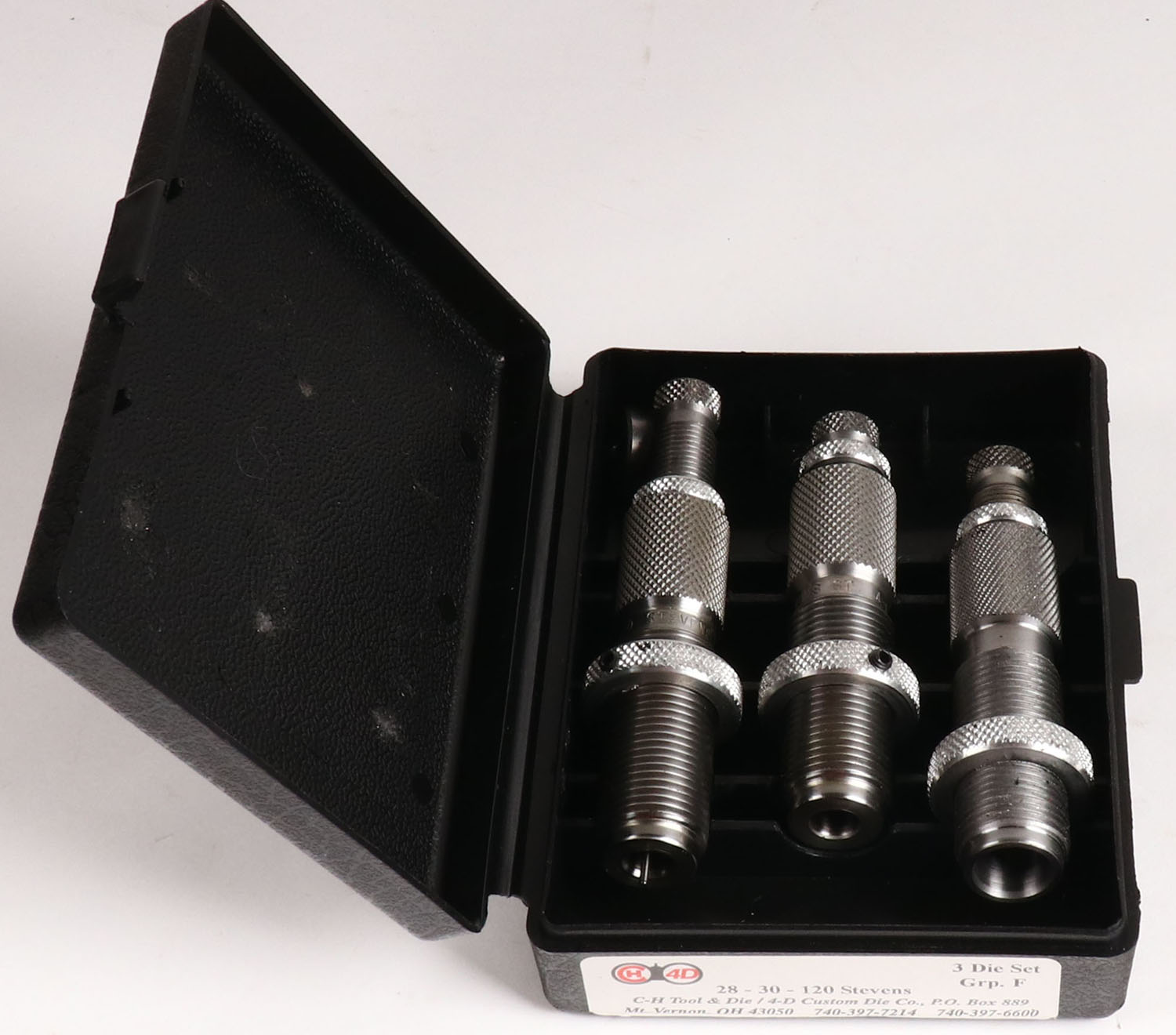 C-H Tool & Die reloading dies, .28-30-120 stevens, in original box. Grade: Excellent - Value: 6 to 60