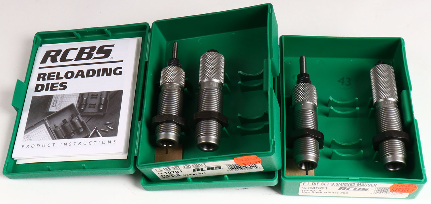 Lot of 2 RCBS reloading dies, .220 swift and 9.3mm x 62 Mauser., in original box. Grade: Excellent - Value: 16 to 60