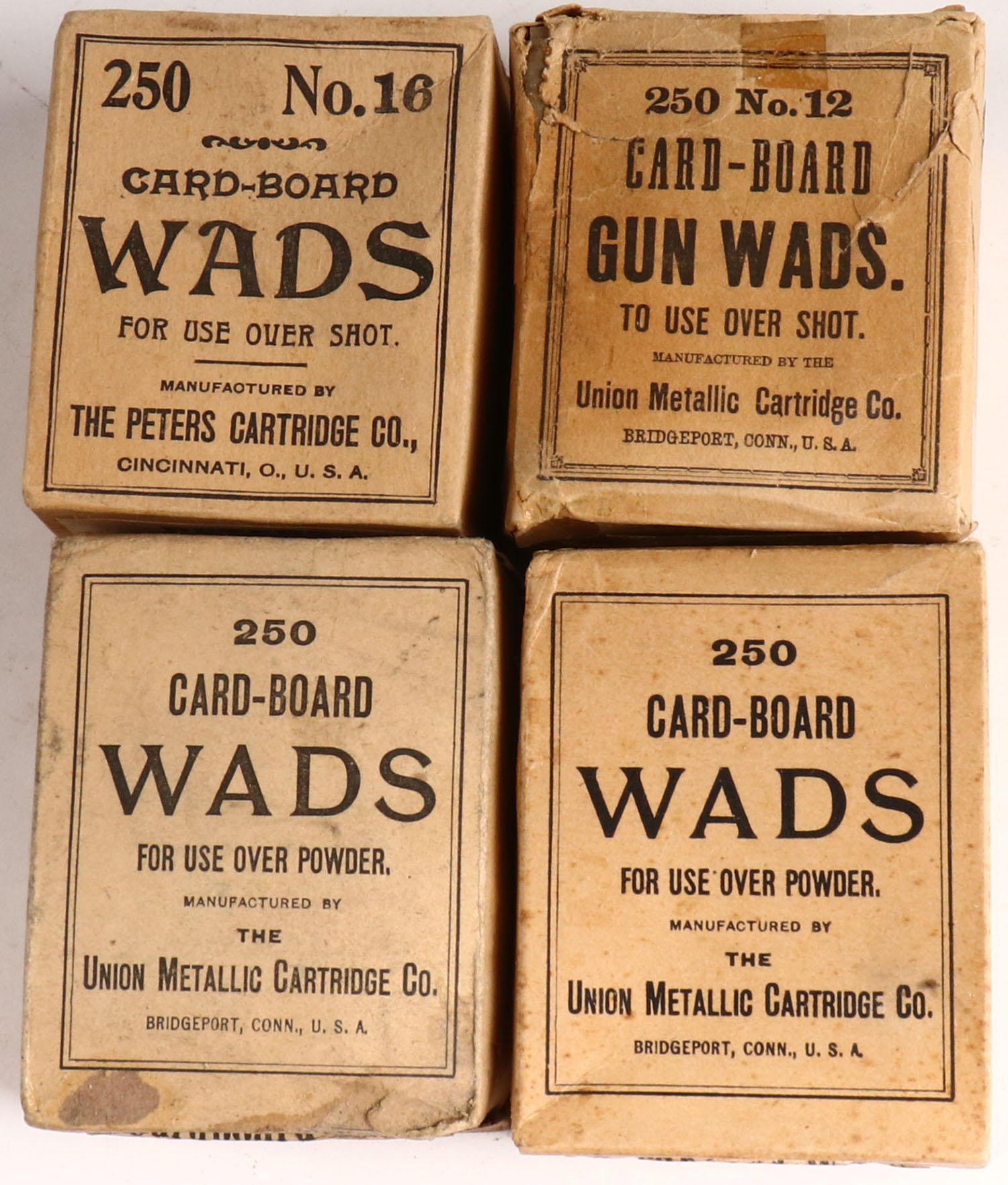 Lot of 4 cardboard wad boxes. Grade: Very Good ++ - Value: 2 to 40