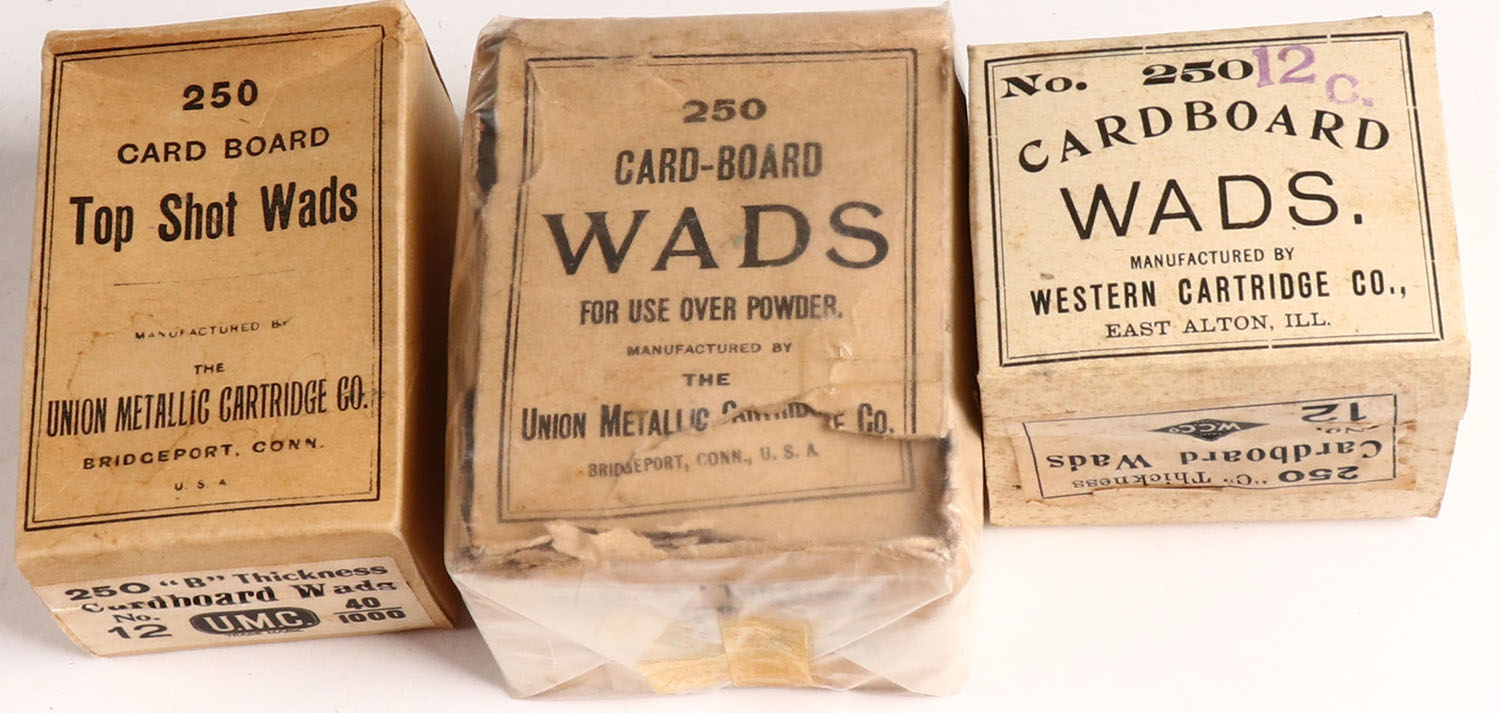 Lot of 3 cardboard wad boxes. Grade: Very Good ++ - Value: 2 to 60