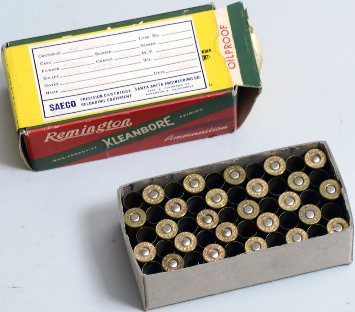 Lot of Bargains, Lot of .44sp Pistol Bargains: (7) 50-round boxes of Elmer Keith hand load: Lyman #429421 cast 250 grain bullet with 17 gr Hercules 1200 powder. (9) 50-round boxes of primed .44sp brass. (2) 50-round boxes of .44sp spent brass, + 2 misc. boxed 44sp items. These items CAN NOT BE RETURNED - Value: 2 to 500