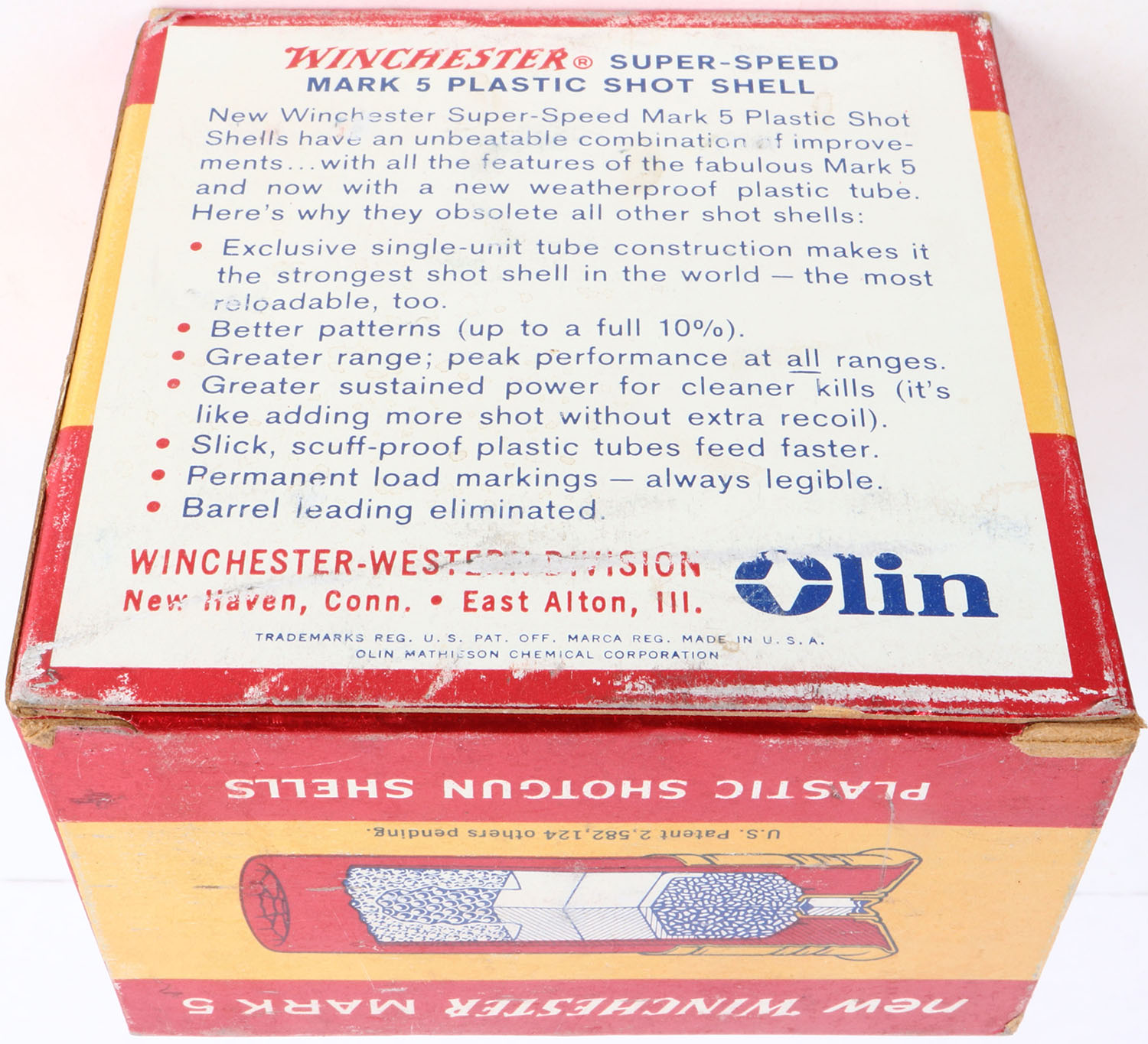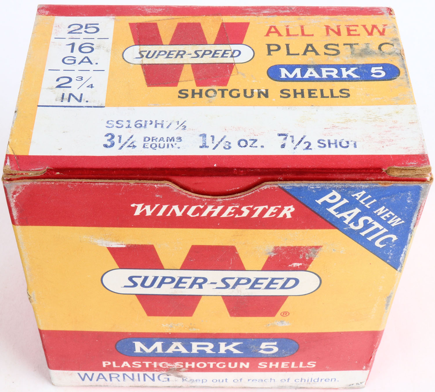 Winchester, Super Speed Mark 5, 12ga, 1pc., Full, multi-colored box, shot size 6, box is solid with very nice colors, Shells are very good. Grade: Very Good ++ - Value: 10 to 30