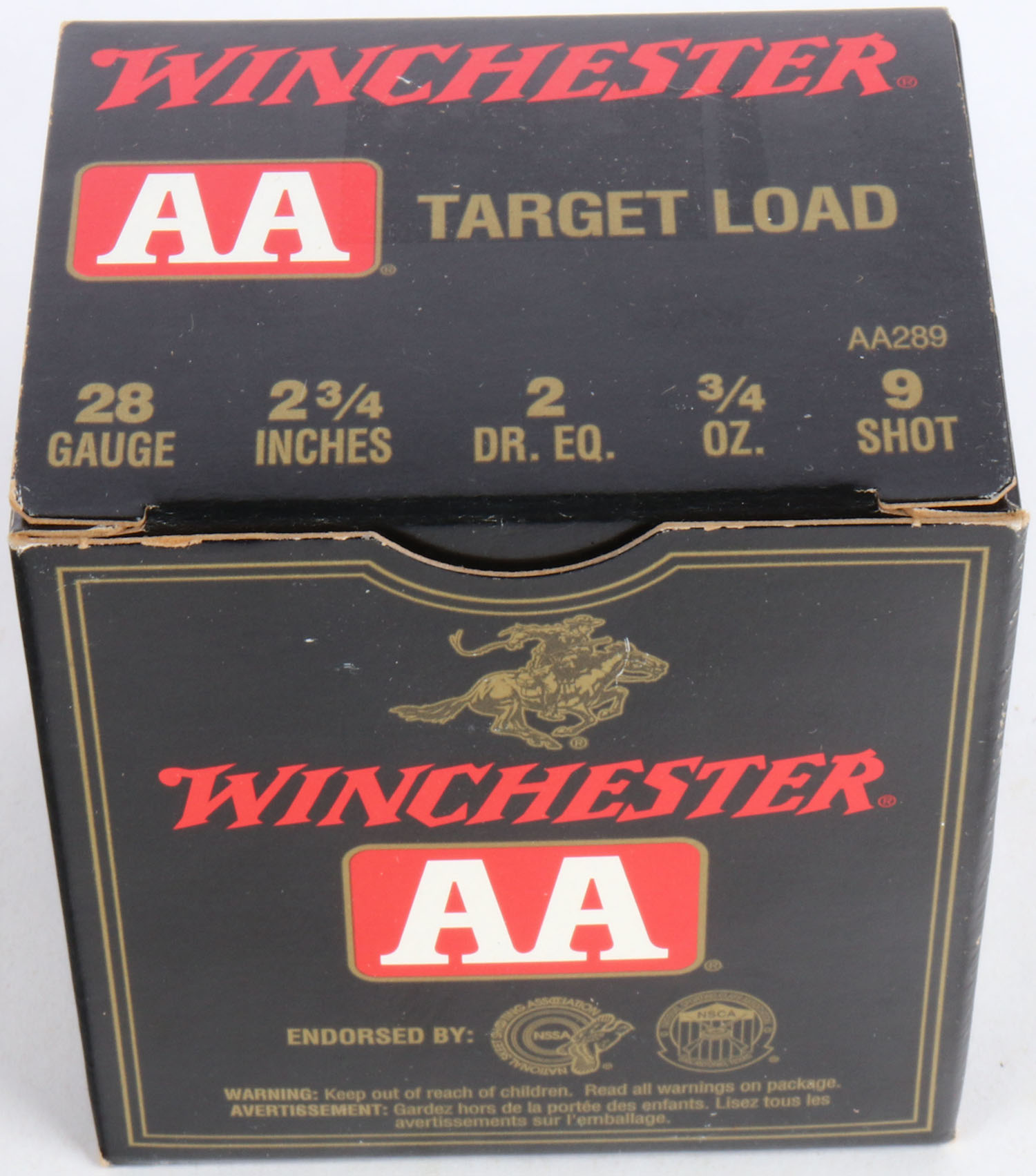 Winchester, AA Target Load, 28ga, 1pc., Full, multi-colored box, shot size 9, box is solid with great colors, Shells are excellent. Grade: Excellent + - Value: 10 to 30