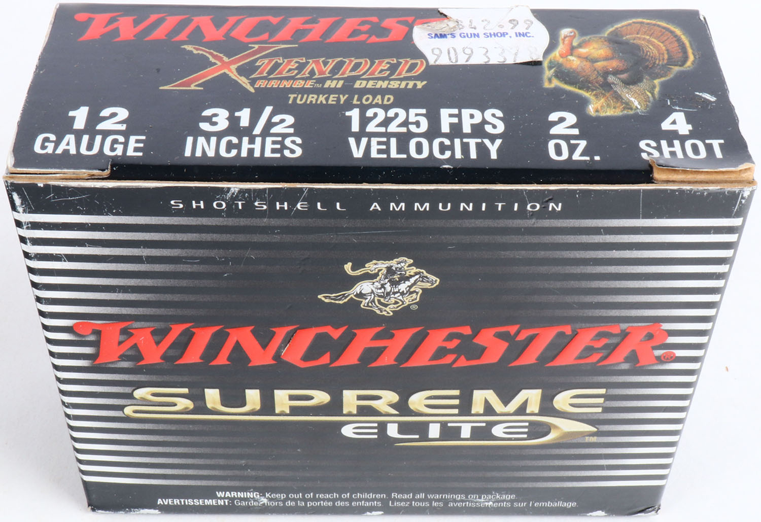 Winchester, Supreme Elite Turkey Loads, 12ga., 1pc., Full, shot size 4, box is solid & shells are excellent. Grade: Excellent + - Value: 8 to 30