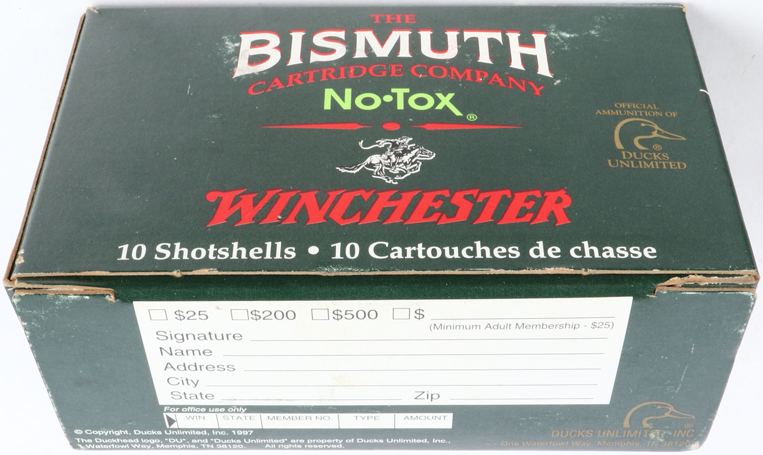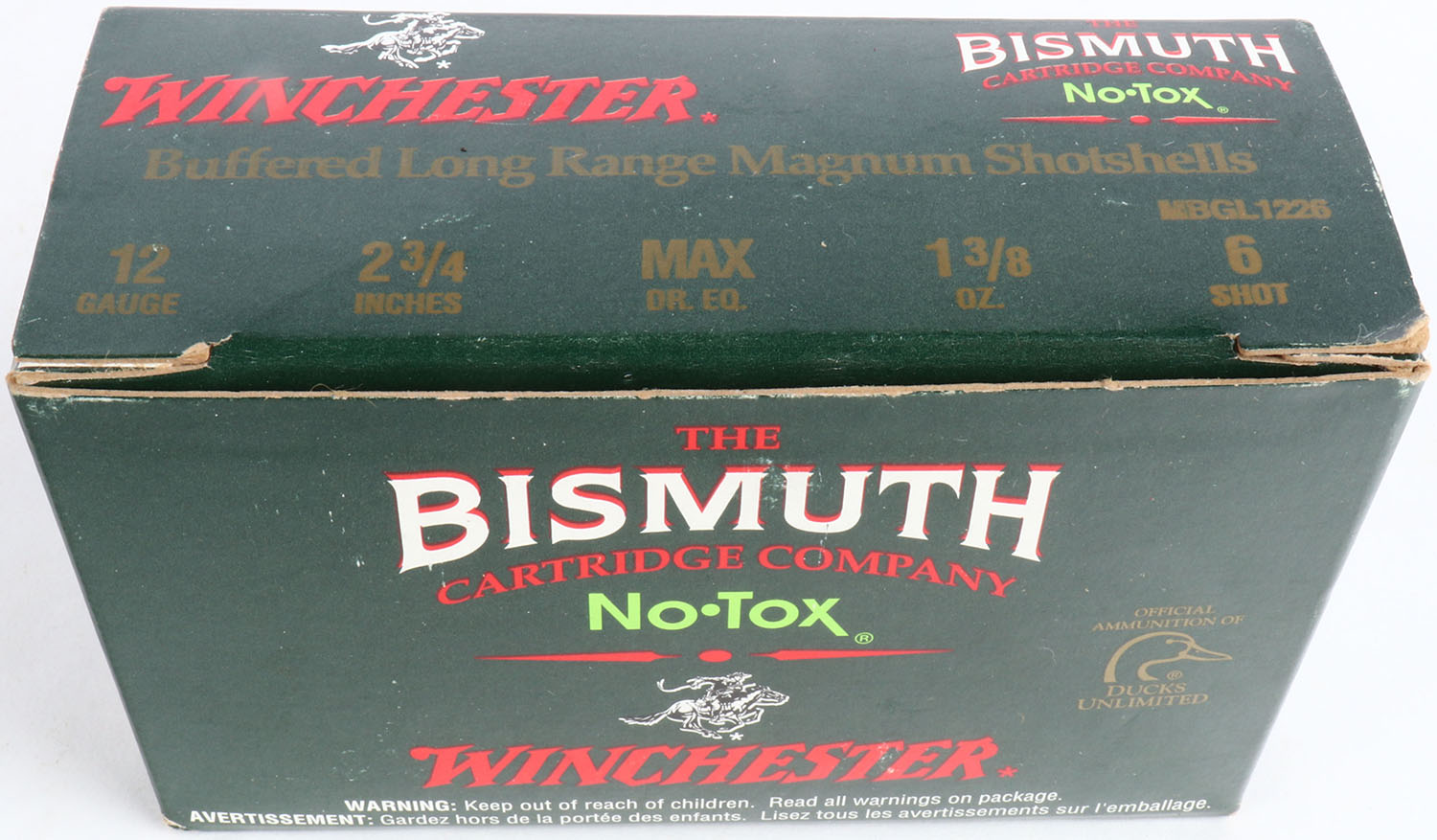 Winchester, Bismuth, NO-TOX, 12ga., 1pc., Full, shot size 6, box is solid & shells are excellent. Grade: Excellent + - Value: 10 to 30
