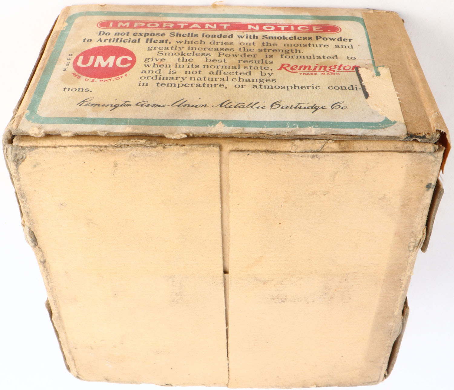 REM UMC, Nitro Club, 12ga., 2pc., Full with 9rds being correct shot size, shot size 8 CH Steel Lined, buff box with sunburst logo & Mallard flying on top box has nice colors to label with age soiling, edge wear & tape repair, Shells are very good. Grade: Very Good ++ - Value: 20 to 100