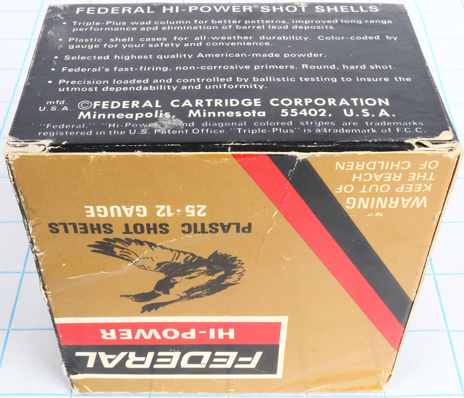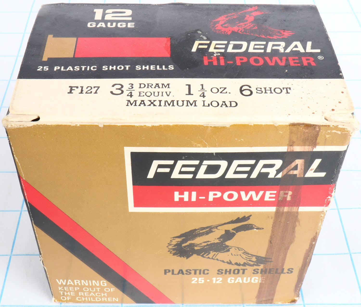Federal, Hi-Power, 12ga., 1pc., Full, shot size 6 Maximum Load, box is solid with great colors, shells are excellent. Grade: Excellent - Value: 10 to 30