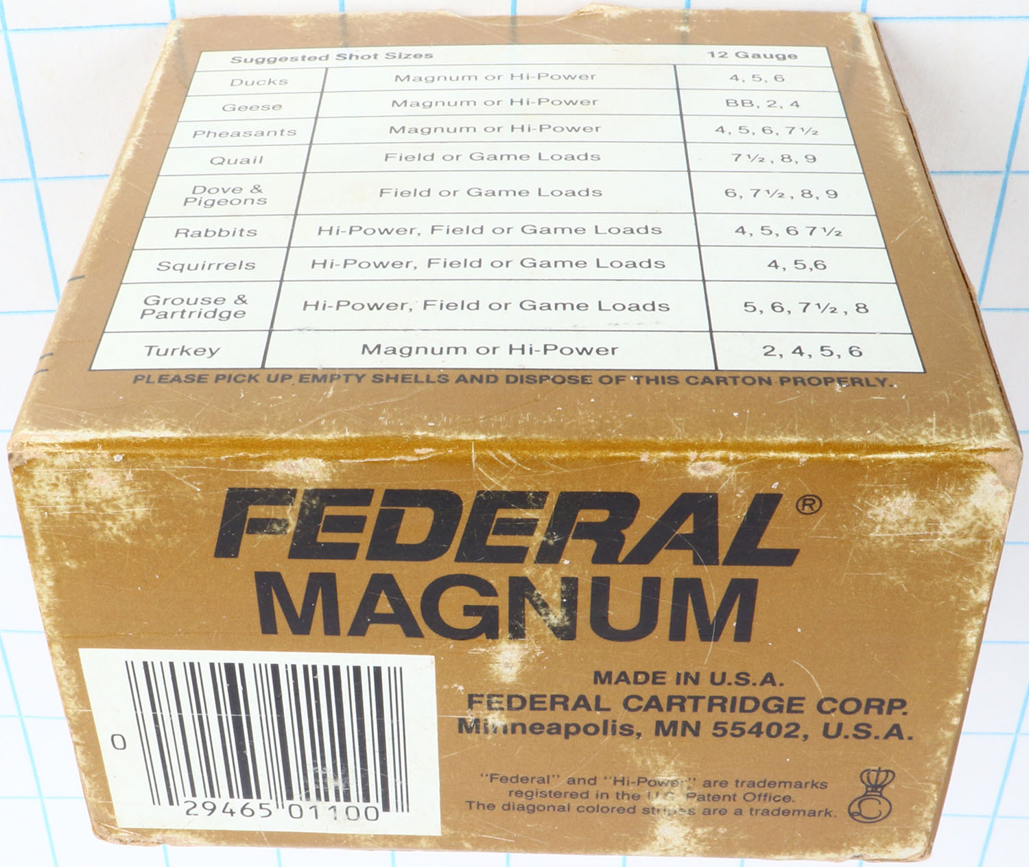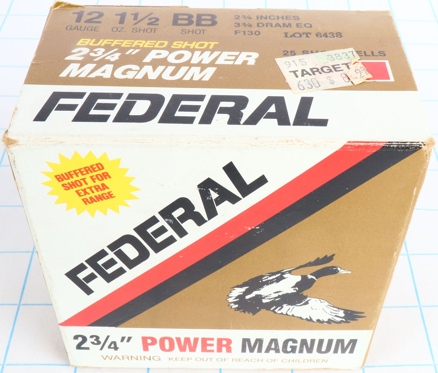 Federal, 12ga., 1pc., Full, shot size BB Power Magnum, box is solid with great colors, shells are excellent. Grade: Excellent - Value: 10 to 30