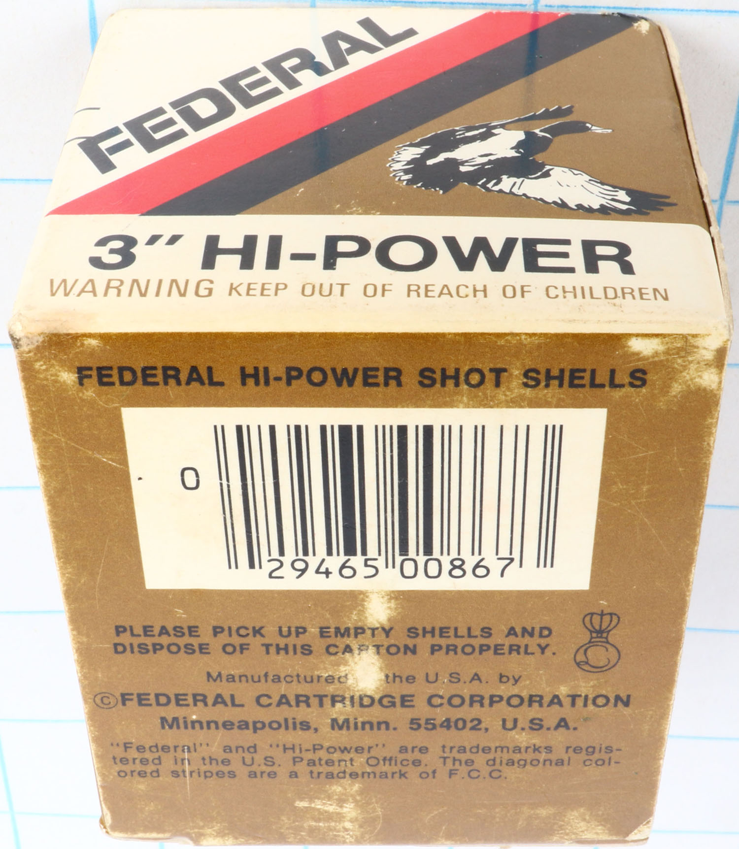 Federal, Hi-Power, 410ga., 1pc., Full, shot size 7 1/2, box is solid with great colors, shells are excellent. Grade: Excellent - Value: 10 to 30