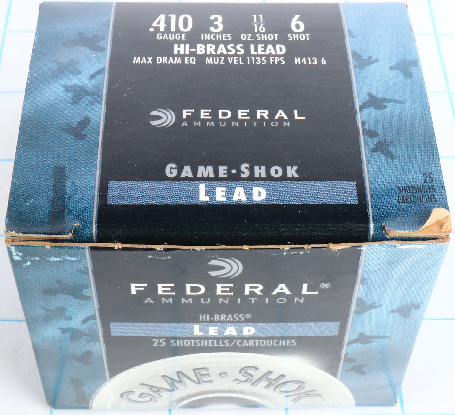 Federal, Game-Shok, 410ga., 1pc., Full, shot size 6, box is solid with great colors, shells are excellent. Grade: Excellent - Value: 10 to 30