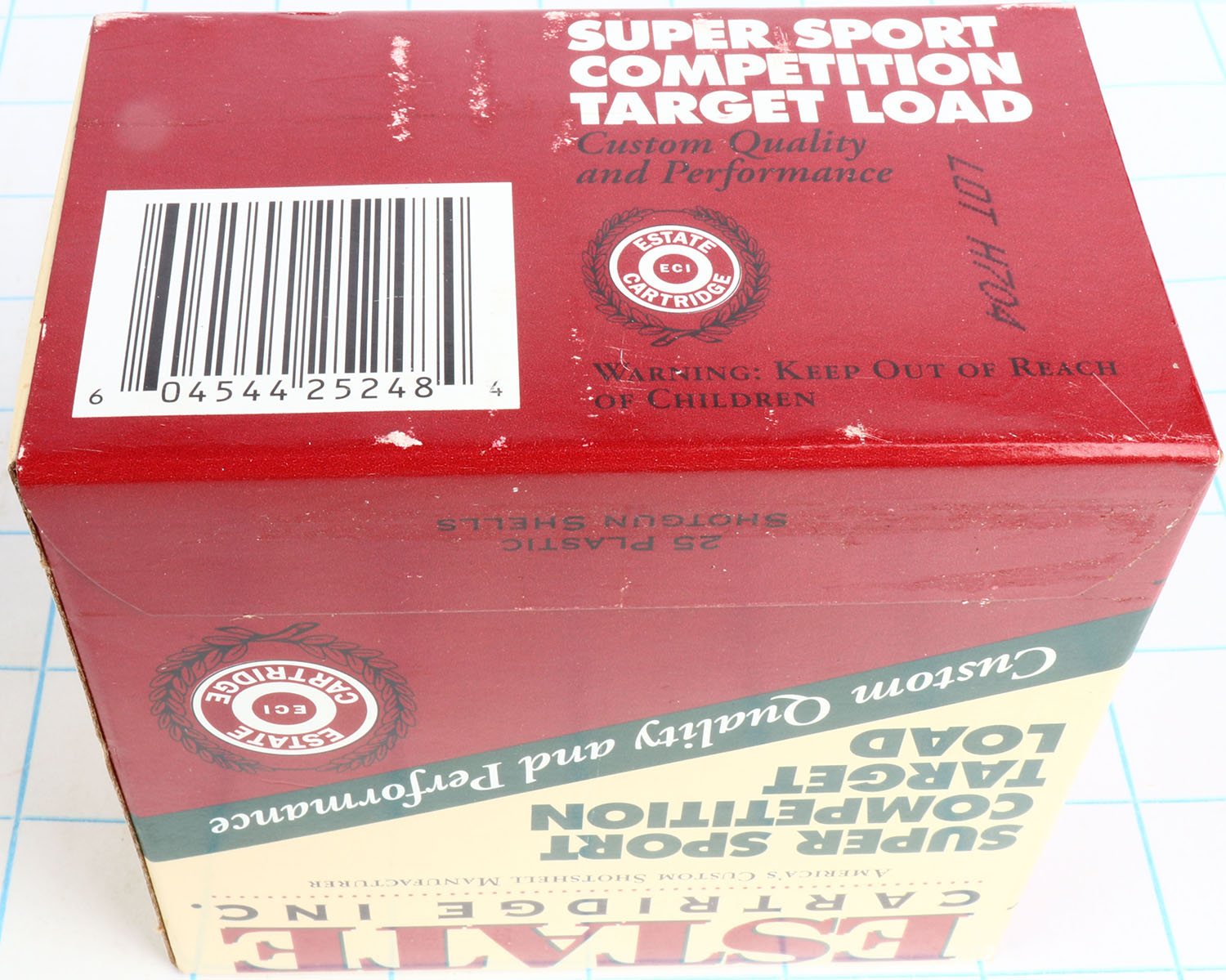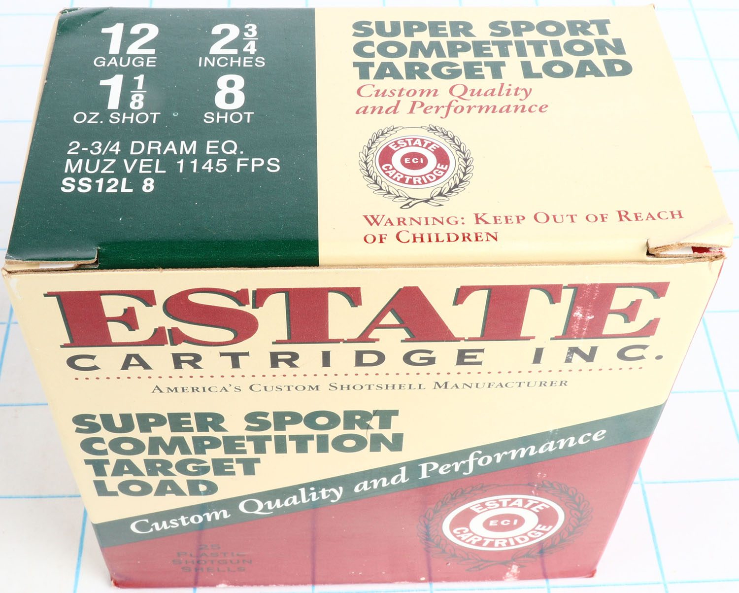 Estate, 12ga., 1pc., Full, shot size 8, box is solid, Shells are excellent. Grade: Excellent - Value: 10 to 30