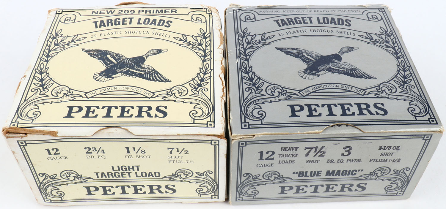 Lot of 2 Peters, 12ga., 1pc., Appears Full, shot size 7 1/2, multi-colored box. Grade: Excellent - Value: 10 to 30