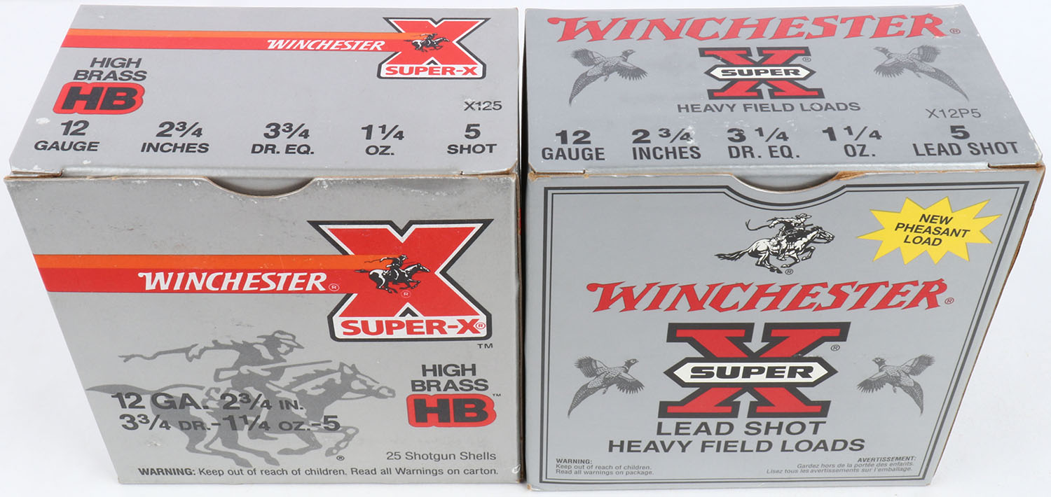 Lot of 2 Winchester, 12ga., 1pc., Appears Full, shot size 5, multi-colored box. Grade: Excellent - Value: 10 to 30