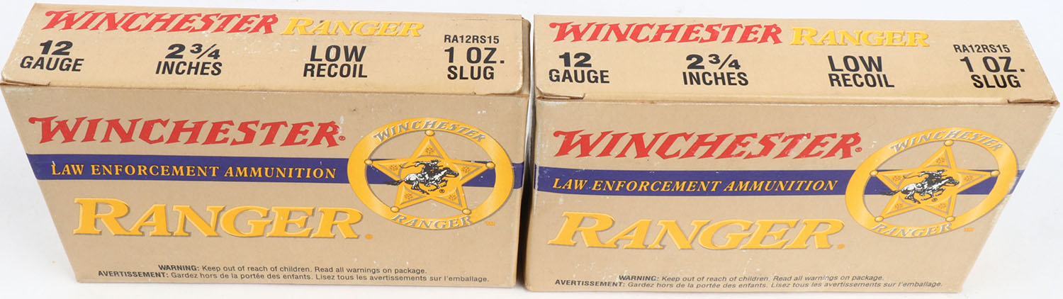 Lot of 2 Winchester, 12ga., 1pc., Appears Full, shot size Rifled Slug, multi-colored box. Grade: Excellent - Value: 10 to 30