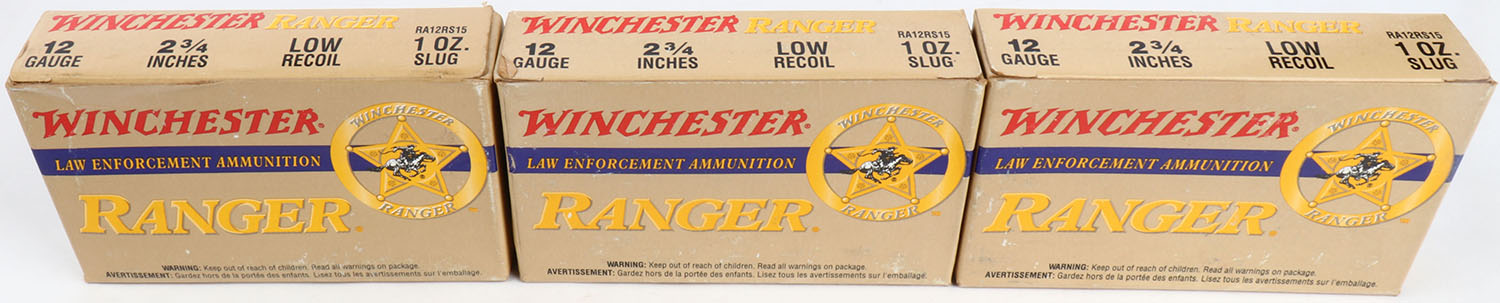 Lot of 3 Winchester, 12ga., 1pc., Appears Full, shot size Rifled Slug, multi-colored box. Grade: Excellent - Value: 10 to 30