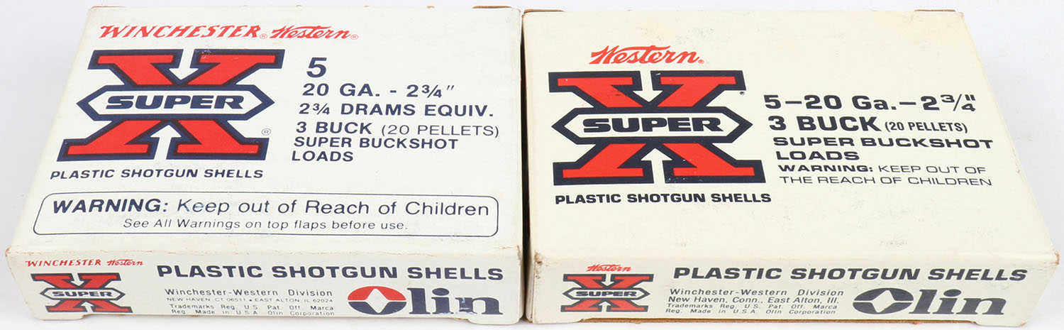Lot of 2 Winchester-Western, 20ga., 1pc., Appears Partial, shot size 3 Buck, multi-colored box. Grade: Excellent - Value: 10 to 30