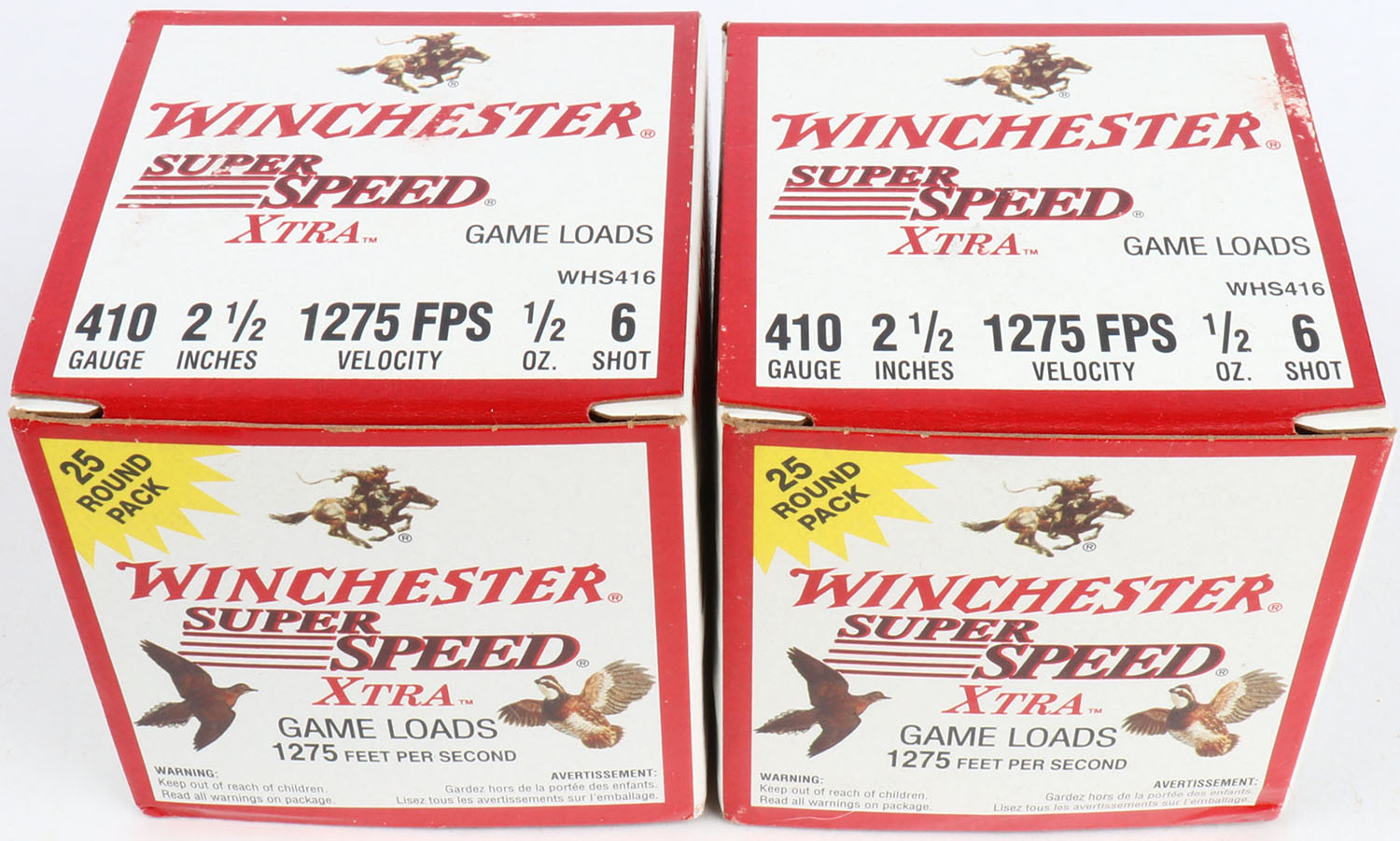 Lot of 2 Winchester, 410ga., 1pc., Appears Full, shot size 6, multi-colored box. Grade: Excellent - Value: 10 to 30