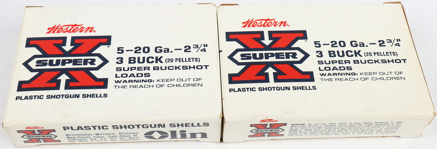 Lot of 2 Western, 20ga., 1pc., Appears Full, shot size 3 Buck, multi-colored box. Grade: Excellent - Value: 10 to 30