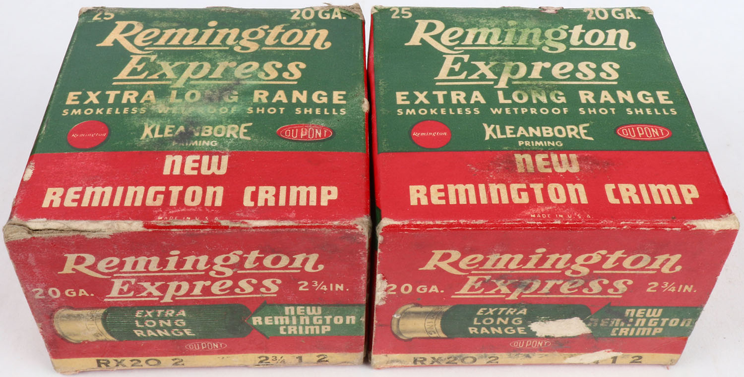 Lot of 2 Remington, 20ga., 1pc., Appears Full, shot size 2, multi-colored box. Grade: Very Good ++ - Value: 10 to 30