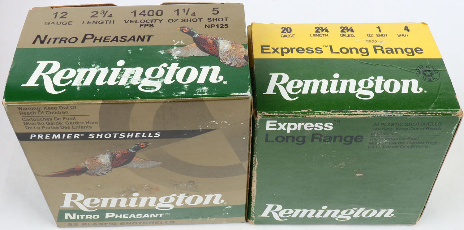 Lot of 2 Remington, 12ga. & 20ga., 1pc., Appears Partial, shot size 5 & 4, multi-colored box. Grade: Excellent - Value: 10 to 30
