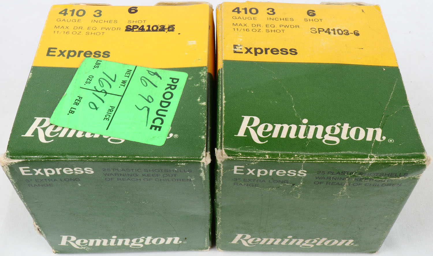 Lot of 2 Remington, 410ga., 1pc., Appears Full, shot size 6, multi-colored box. Grade: Excellent - Value: 10 to 30