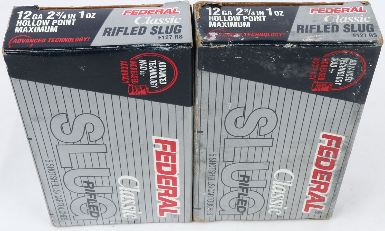 Lot of 2 Federal, 12ga., 1pc., Appears Full, shot size Rifled Slug, multi-colored box. Grade: Excellent - Value: 10 to 30