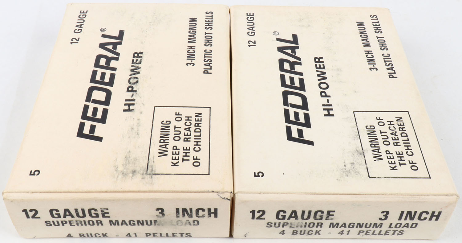Lot of 2 Federal, 12ga., 1pc., Appears Full, shot size 4 Buck, multi-colored box. Grade: Excellent - Value: 10 to 30