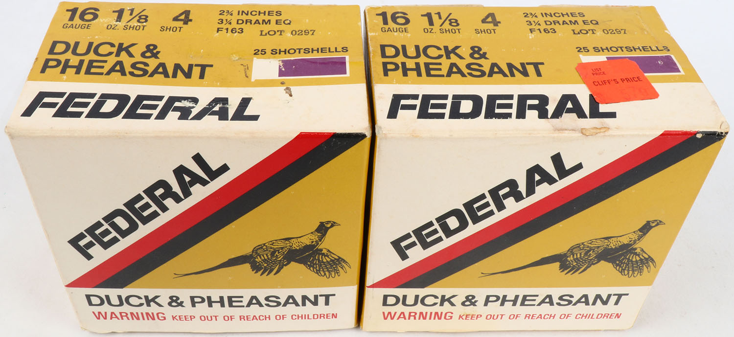 Lot of 2 Federal, 16ga., 1pc., Appears Full, shot size 4, multi-colored box. Grade: Excellent - Value: 10 to 30