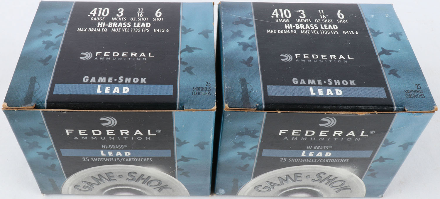 Lot of 2 Federal, 410ga., 1pc., Appears Full, shot size 6, multi-colored box. Grade: Excellent - Value: 10 to 30