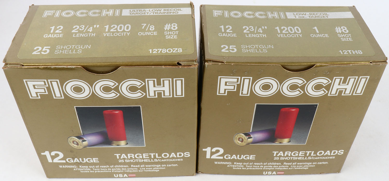 Lot of 2 Fiocchi, 12ga., 1pc., Appears Full, shot size 8, multi-colored box. Grade: Excellent - Value: 10 to 30