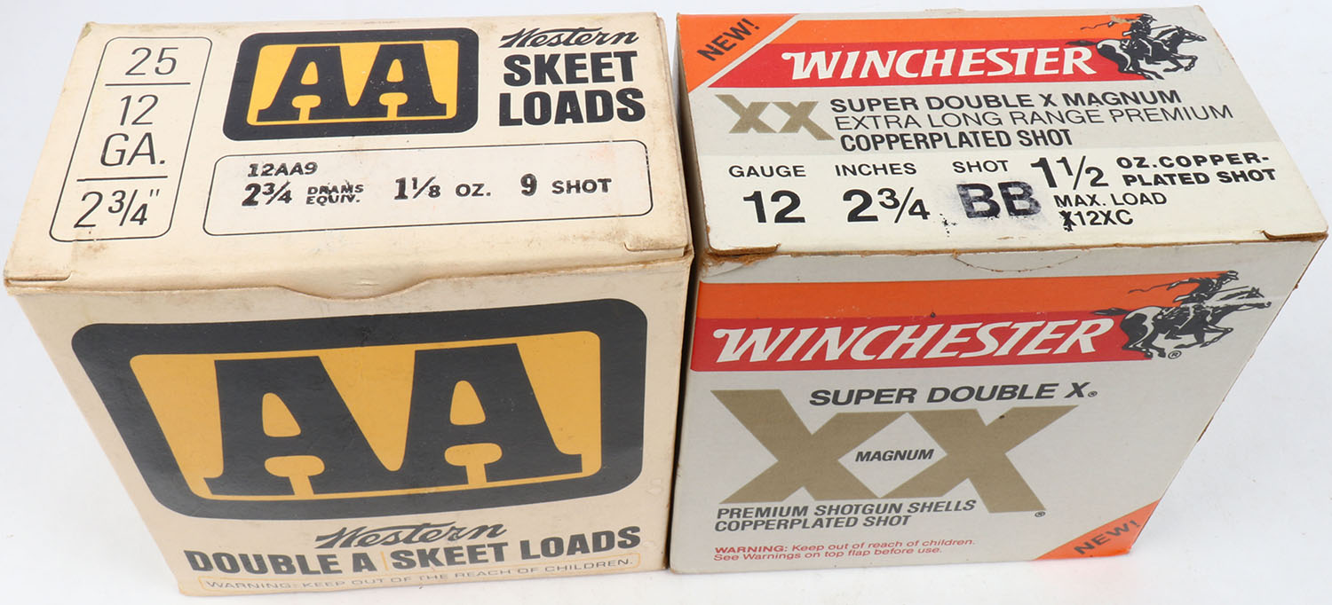 Lot of 2 Winchester/Western, 12ga., 1pc., Appears Full, shot size BB & 9, multi-colored box. Grade: Excellent - Value: 10 to 30