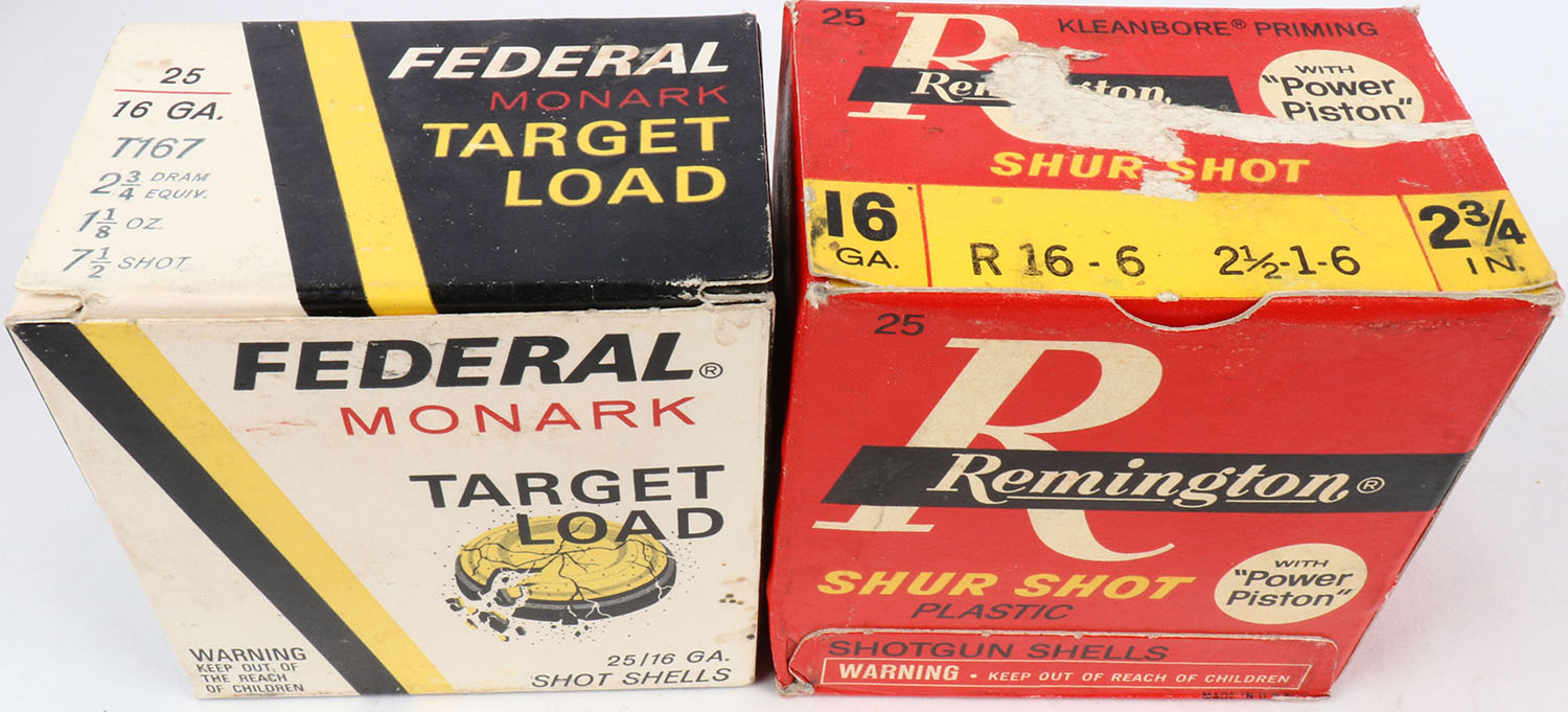 Lot of 2 Federal/Remington, 16ga., 1pc., Appears Full, shot size 7 1/2 & 6, multi-colored box. Grade: Excellent - Value: 10 to 30
