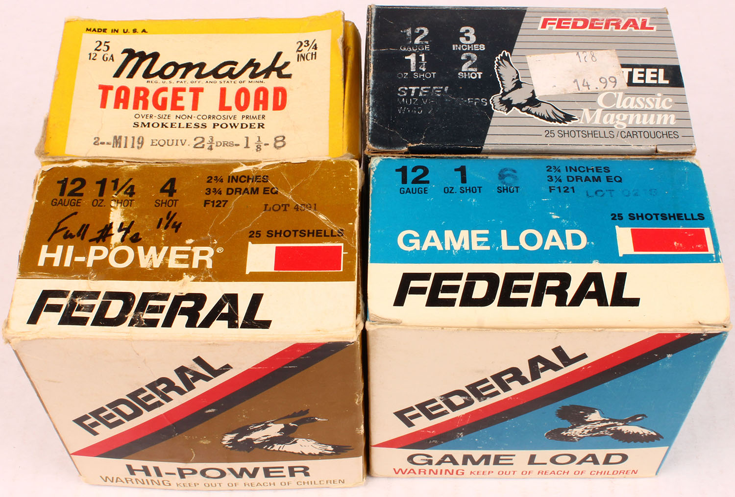 Lot of 4, Federal, Mostly Partial, Shotshell Boxes. Grade: Very Good ++ - Value: 2 to 60