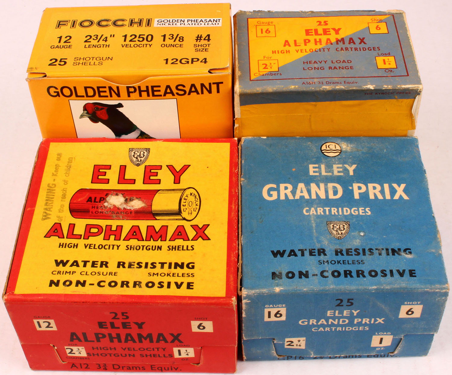 | Lot of 4, Eley/Fiocchi, Mostly Partial, Shotshell Boxes. Grade:...