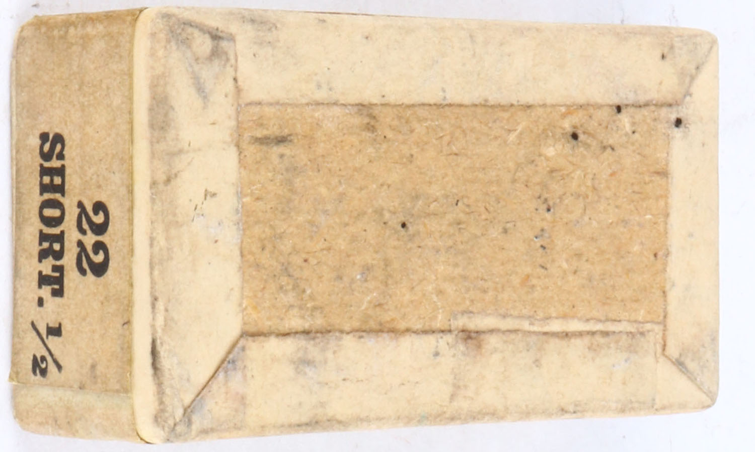 Winchester, Rifle Cartridges, .22 Short, Oct. 24 patent date, RR: WRA-37 S-10e, FULL & SEALED, 2pc. Buff box with green top & side sealing labels, side sealing label was placed upside down, box is solid with excellent color, very minor age soiling & shelf wear, very minor corner wear, edges are mostly crisp, labels are intact. Grade: Excellent + - Value: 50 to 400